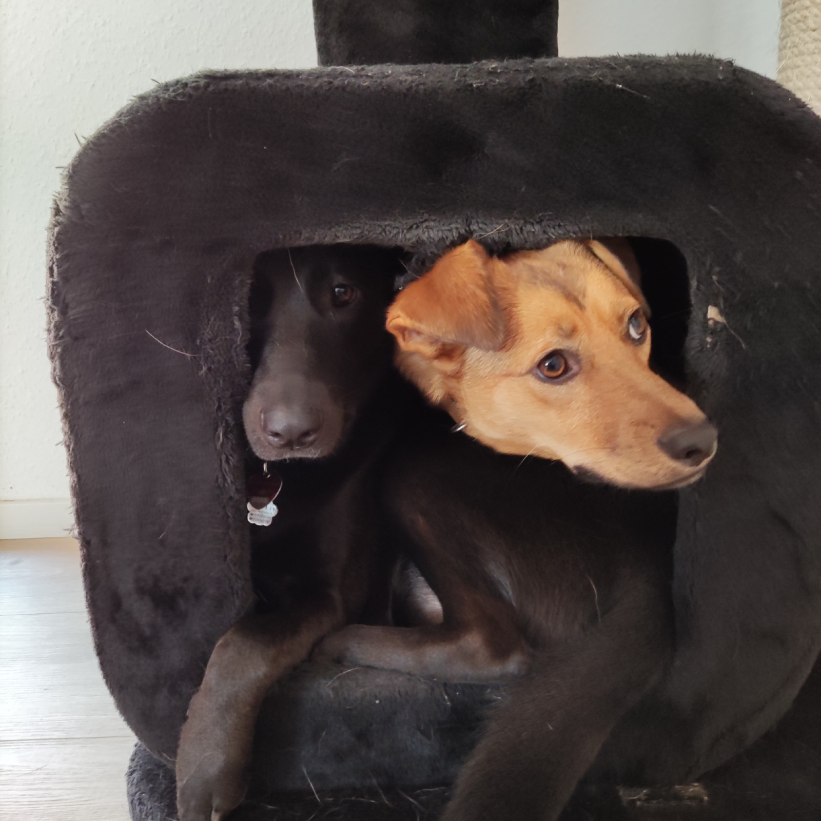 Außerdem haben wir auch 2 Hündinnen aus der Ukraine. Diese sind hin und wieder auch bei der Betreuung anwesend haben aber auch ihren eigenen Rückzugsort.